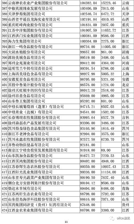 本次入圍門檻為6.7億元,多家主營油脂業務的企業上榜,山東、江蘇兩省入圍油企數量最多。
