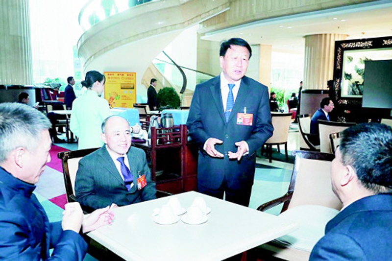 3月12日,李登海(站立者)、宮明杰等山東代表團(tuán)代表討論有關(guān)知識(shí)產(chǎn)權(quán)保護(hù)的話題,認(rèn)為應(yīng)把對(duì)新品種的保護(hù)提升到法律層面,為發(fā)展現(xiàn)代種業(yè)保駕護(hù)航。(轉(zhuǎn)自《大眾日?qǐng)?bào)》手機(jī)客戶端)