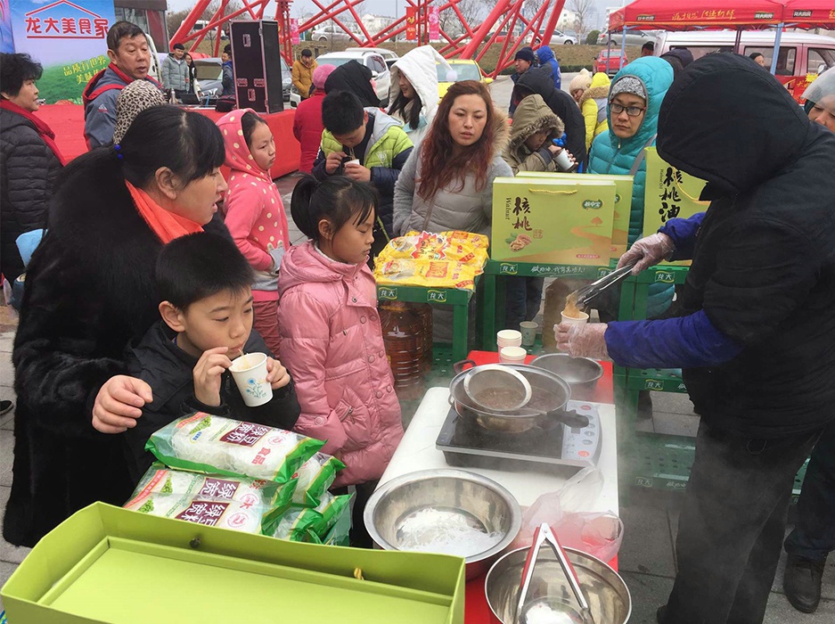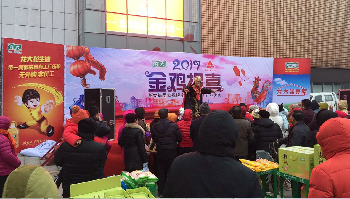 1月7日—9日,銀座萊陽(yáng)店門(mén)前廣場(chǎng)喜氣洋洋。龍大集團(tuán)組織旗下植物油、肉食品兩大內(nèi)貿(mào)產(chǎn)品進(jìn)行為期3天的路演,為銀座萊陽(yáng)店開(kāi)業(yè)助力。