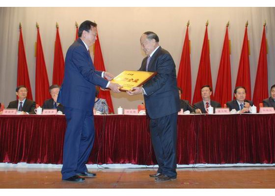 2月24日,萊陽市委市政府在工人文化宮召開總結(jié)表彰和新年度動員大會。會上,表彰了全市先進企業(yè)和先進單位。圖為萊陽市委書記賀業(yè)增(左)為龍大集團頒發(fā)“功勛企業(yè)”獎牌。