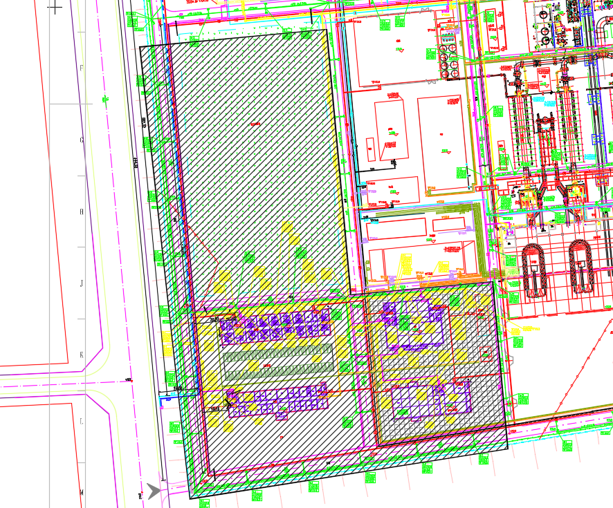 緯二路南側(cè)路緣南10米以南、經(jīng)三路西側(cè)路緣石以西、緯三路南側(cè)路緣石以南、經(jīng)二路西側(cè)路緣石及延長線以西區(qū)域(下圖陰影區(qū)域)除雨水、軟水給水、天然氣以外的所有室外管網(wǎng)的施工及地面硬化鋪裝(不含道路),甲供材以外的材料采購及安裝。室外管網(wǎng)系統(tǒng)包含但不限于生活給水、生活熱水、消防給水、二次利用給水、循環(huán)供回水、生活排水、熱力系統(tǒng)及纜溝等。